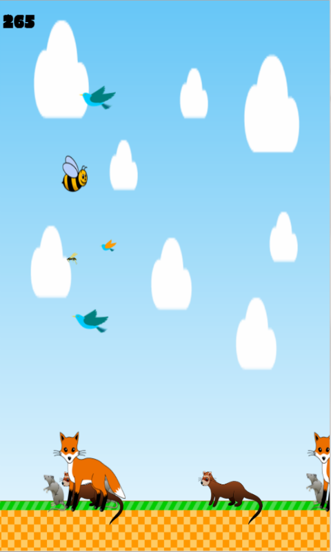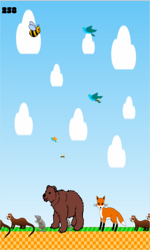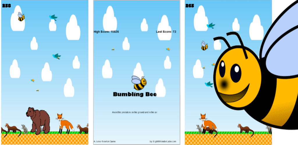 The Bumbling Bee must fly over and under the predators trying to eat him. Tap the screen to make him fly. Modeled after the helicopter and flappy bird style games, keep tapping to fly through the fields.