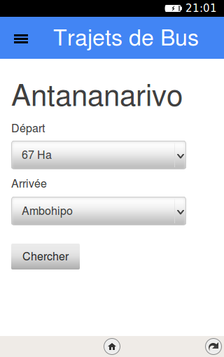 An application to help you find which buses to take to go to one place from another in Madagascar