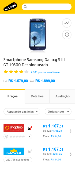 O melhor serviço de comparação de preços agora no seu celular. A tecnologia do Buscapé permite que você não perca tempo procurando em várias lojas por preços ou informações importantes de um determinado serviço ou produto. Os produtos são agrupados e organizados no mesmo lugar, deixando o processo de compra muito mais rápido e fácil.