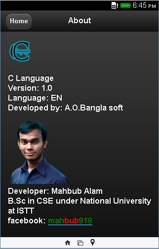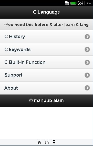 This app gives you information about c language history built-in function & keywords. Also great source of information about c in offline.