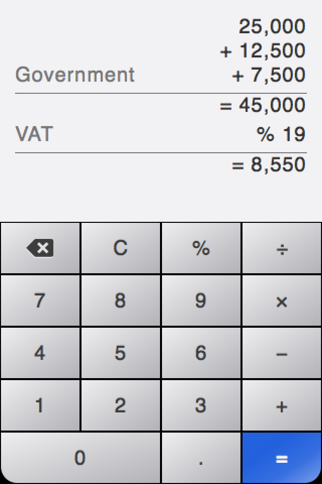 "The idea of »Calc« is quite simple: a table calculator that is not overloaded with keys and functions but one that provides an easy to use interface with just the operations you need the most. »Calc« intentionally includes just the basic airthmetic operations. The whole computation path is always visible next to the number keys. This simplicity helps in reducing misstypes and errors – you focus automatically on the computation you like to do. You can add text labels on the left by tapping on the start of each line making the meaning of the content clearer in longer computations. === Need help? Contact us! === We would be glad to get some feedback for »Calc«. Contact [email protected] if you have any sort of feature request or encounter troubles using it. Many thanks!
