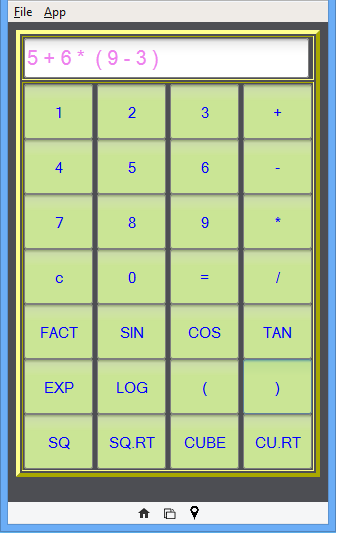 This is Advanced Calculator that can evaluate Addition,Subtraction,Multiplication,Division, Trigonometric Function,Logarithmic Function and also mathematical expressions.