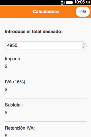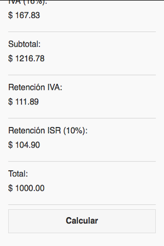 Sencilla calculadora para saber los impuestos y cantidades que debemos colocar a la hora de generar un recibo de honorarios como el IVA, la retencion del ISR e IVA.