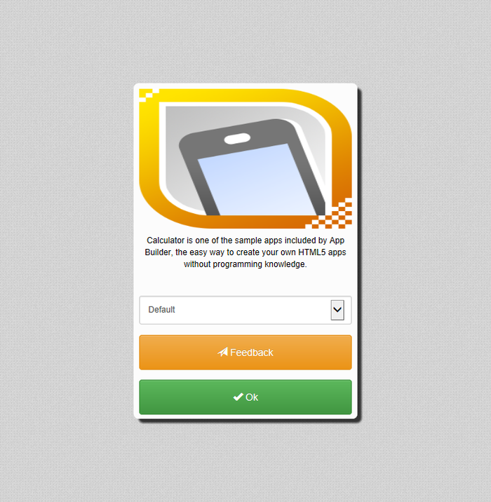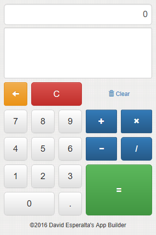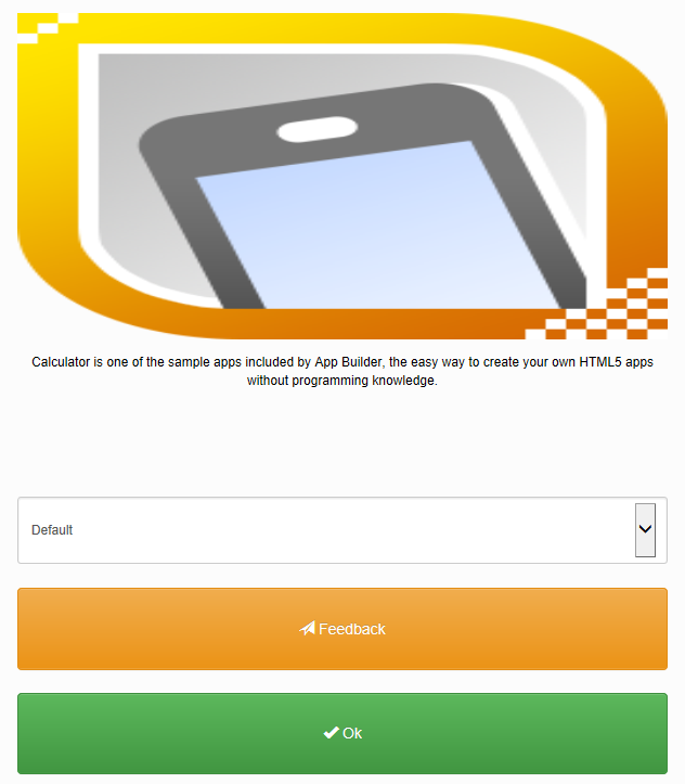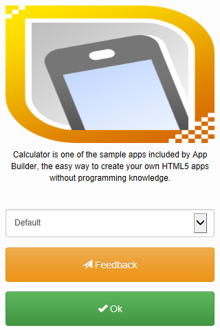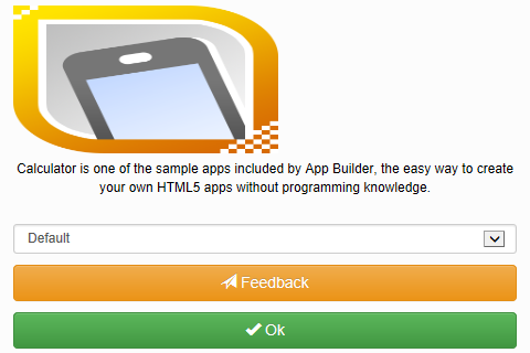 This app sample show us a more or less simple calculator made with App Builder. The sample show us various aspect of an app project, like the usage of app functions, different buttons and button kinds, how to use the Math action, etc. etc.