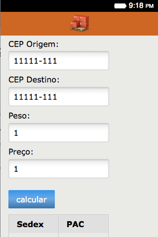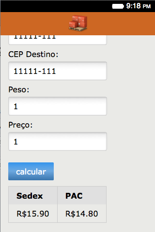 Shipping calculation - Ideal for online shops , auctions and sales in general. The information is obtained from the Correios from Brazil.