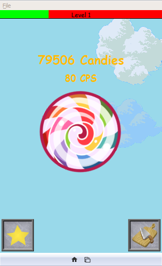 Candy Clicker! Be prepared for endless hours of fun and entertainment! The game is very simple: Click the lollipop in the middle of the screen to get candies. As soon you have enough candies you can buy upgrades in the shop to collect candies quicker.