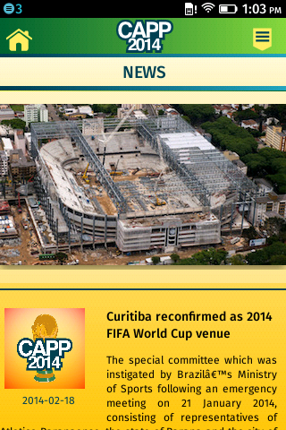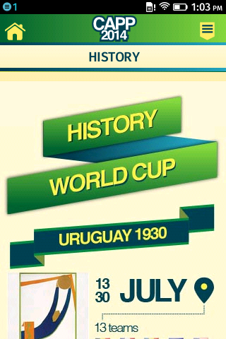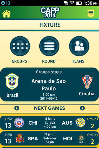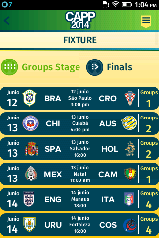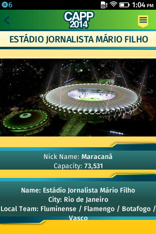 LIVE, SHARE AND KEEP CONNECTED TO BRASIL 2014 CAPP AND PREPARE YOUR SELF TO BE PART OF THIS BIG COMMUNITY AROUND THE WORLD CUP. Great updates are coming in 2014!!! - Available in English, Spanish and Portuguese - In this NON OFFICIAL high app, you will be able to find all the information related with this football tournament, which will be played in Brazil from June to July 2014. - Content This is a very-easy-to-navigate app in which you will find, instantly, news that have to do with the tournament, recent scores, etc. Moreover, you will have quick and agile access to every single detail concerning every national selection, their players –with pictures and useful data-, stadiums and much more. Inside the app, you’ll find, as well, Tripadvisor’s useful information if you’re a tourist in Brazil during the tournament. Hotels, restaurants, tours, and many other items could be found here. - Community Through this app, and its interaction with Instagram, you will be able to upload pictures that have to do with the tournament. Tell u show you live it! It doesn’t matter if you’re in a stadium or in a bar… Best pictures will be shared in the app’s galley and the will be seen by thousands of users!
