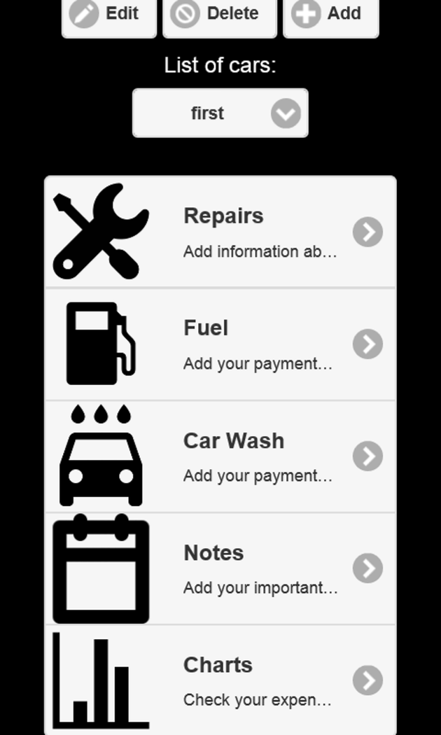 The best cross-platform application for management information about your cars! The best app for anyone who have more than one car. Now you can control your expenses for all vehicles (car, motorbike). You store a lots of information about your vehicles. Save your payments for repairs, fuel, car wash and find out how much you spend on a car. That is very easy! This app is available on: Android, Windows Phone, Firefox OS and in your web browser on carstory.ovh Also app work with external server, wherefore you will be have your data on all devices.