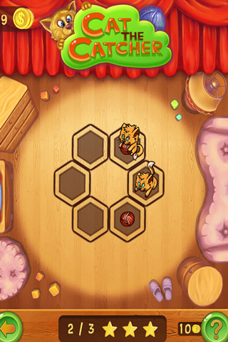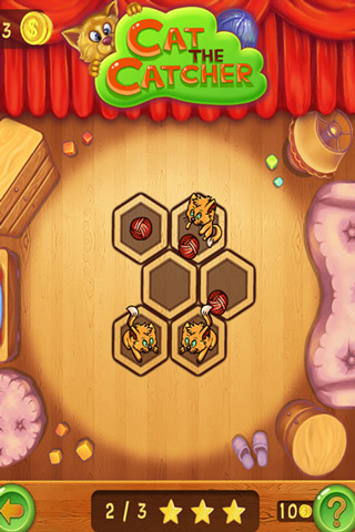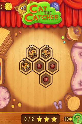 Cat the Catcher is a fun puzzle where your goal is to help the little cat get his string ball in order to play with it. Only the string ball can be moved though, and sometimes there are more than 1 ball and 1 cat in a stage so you have to plan your moves accordingly, you need to move all the balls in the same direction so all the cats get their string balls. Sometimes this will seem tricky and through out the many levels more than puzzle will give you a headache to resolve but that’s the fun!