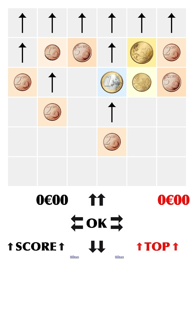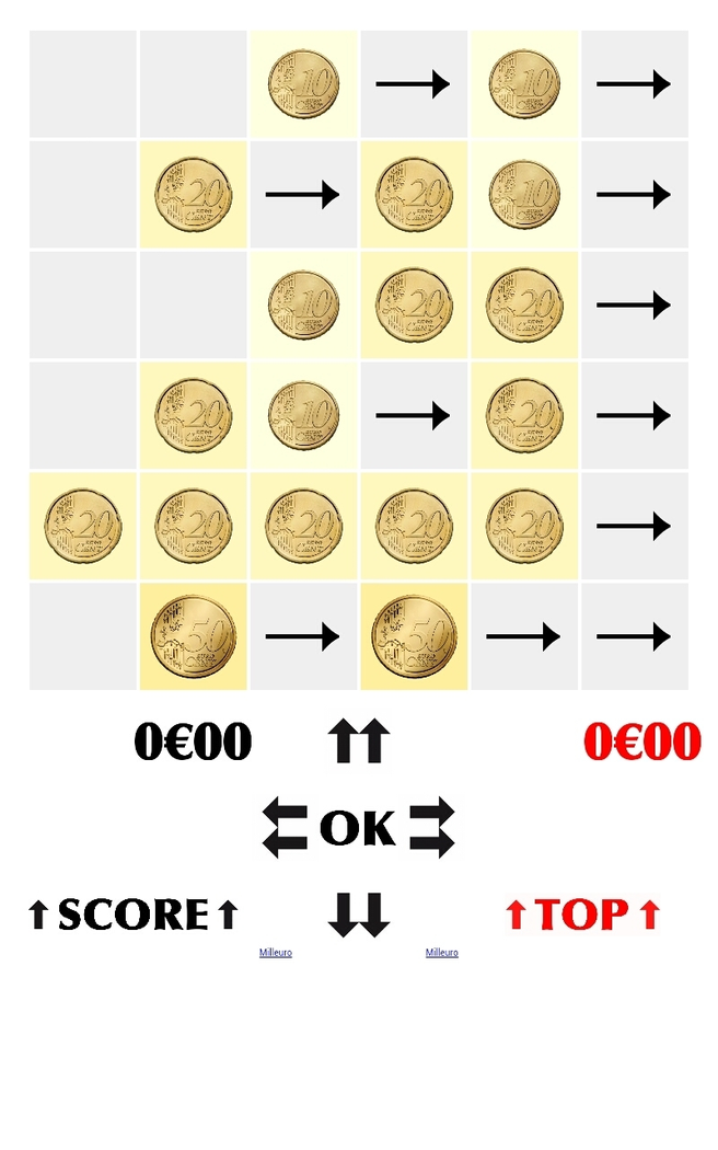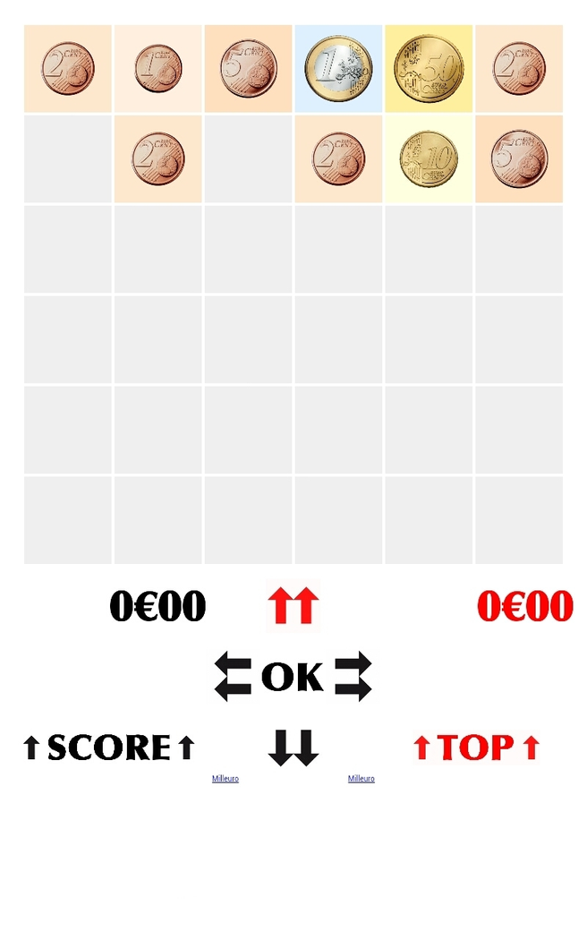 You have to assembly coins and bill notes in order to increase their values and reduce their number: the goal is staying alive. You can only move coins and bill notes against a side of the grid then you can assembly coins and bill notes: 5 replaces two of 2 and one of 1, 10 replaces two of 5 or five of 2, 20 replaces two of 10 and so on.