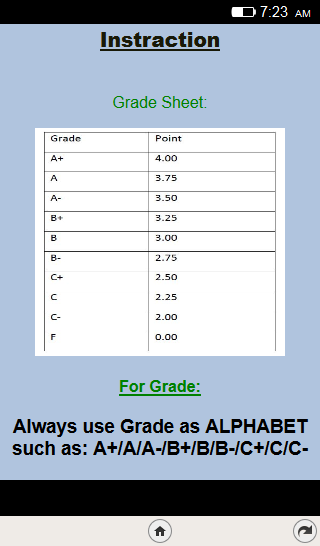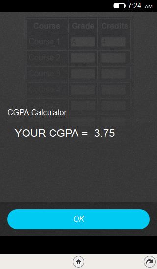 This is a CGPA Calculator. You can calculate your CGPA easily from this application.Thank You, enjoy it