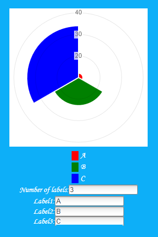 Create charts. Supported Chart Types: Line Chart Bar Chart Radar Chart Polar Area Chart Pie Chart Doughnut Chart Standard Color Values: aqua, black, blue, fuchsia, gray, green, lime, maroon, navy, olive, orange, purple, red, silver, teal, white, and yellow. Note: You can also use color hex codes like #94195b . Color values are for polar area chart, pie chart and doughnut chart only.