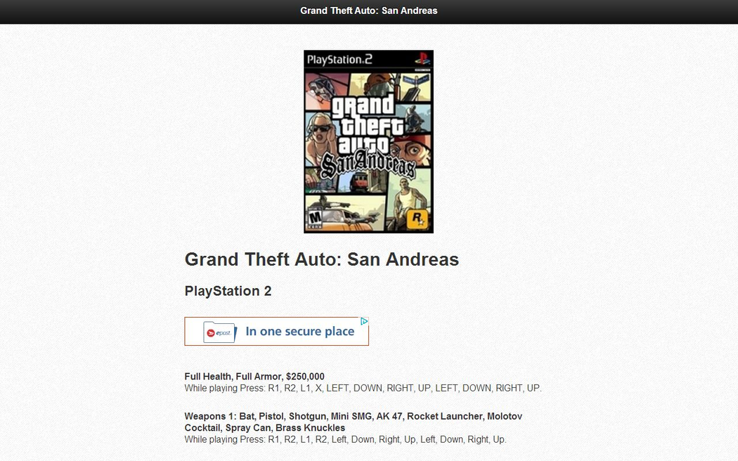 Classic Video Game Cheat Codes Galore! Get cheats for hundreds of games for classic systems.