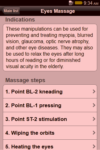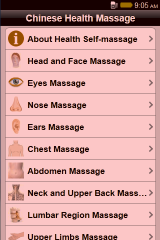 "Chinese Health Massage" is easy to use illustrated guide how to make Chinese self-massage for the purpose of strengthening the body and lengthening the human life. Self-massage therapy has a long history in China. It combines massage manipulations, breathing exercises, and mental relaxation, concentration, and visualization to maximize and restore health to the human body. Chinese self-massage can most definitely play an important role in enhancing immunity and treating disease. App contains description of massage steps for the 10 body areas: Head and Face, Eyes, Nose, Ears, Chest, Abdomen, Neck and Upper Back, Lumbar Region, Upper Limbs, Lower Limbs. Chinese self-massage may also be used as part of an overall treatment plan for the remedying of particular diseases. Chinese self-massage can be successfully combined with modern Western medicine, chiropractic, homeopathic, and naturopathic medicines. Attention! Patients should always consult with a licensed health care professional before using self-massage or any other form of health care! Made with support of appbackr.