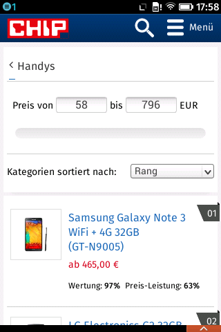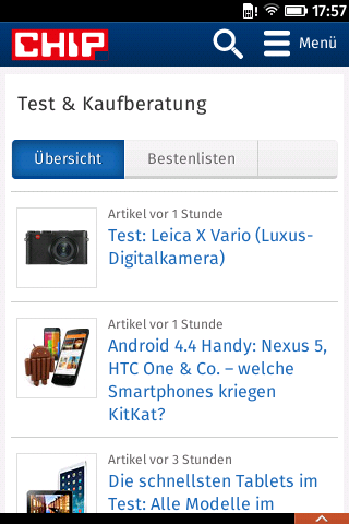 Aktuelle News, Bestenlisten, Top-Tests und Videos von CHIP - immer mit dabei! Top-News Immer informiert: Die aktuellen Technik-Trends, Sicherheitswarnungen und Liveberichte von Messen & Keynotes. Test & Kaufberatung Aktuelle Testberichte: Handys, Fernseher, Kameras, DSLRs, Tablets, Notebooks – alle neuen Produkte werden durch unser renommiertes CHIP Testlabor geprüft. Anhand ausführlicher Testdaten erklären unsere Redakteure verständlich, welche Produkte Ihr Geld wert sind und bei welchem Sonderangebot Sie tatsächlich zuschlagen können. Handy News und Tests aus der Handy-Welt: Unser Handy-Team zeigt Ihnen die neuesten Smartphones vom ersten Gerücht bis zum ausführlichen Test, vergleicht die besten Mobilfunktarife und prüft die Provider im härtesten Netztest Deutschlands. Business Ratgeber für IT-Profis und Selbstständige: Wir zeigen Ihnen Innovationen, Business-Apps, Praxis aus dem IT-Alltag und Alternativen zu klassischer Bürosoftware. Suche Tests, News und Artikel von CHIP ganz einfach auch per Suchfunktion in der App finden.