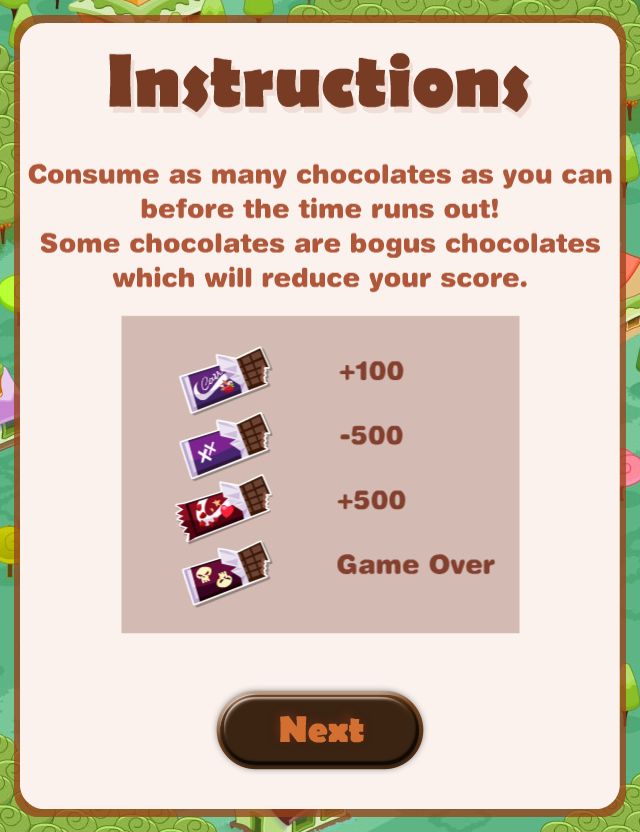 Take a trip to the delicious world of Chocoland, where chocolates appear and disappear like magic! This is a dream come true for a little boy, Carlos Cubo, who has never had chocolate in his life. Help him collect the chocolates before they vanish, but leave the bogus chocolates or risk a tummy ache!