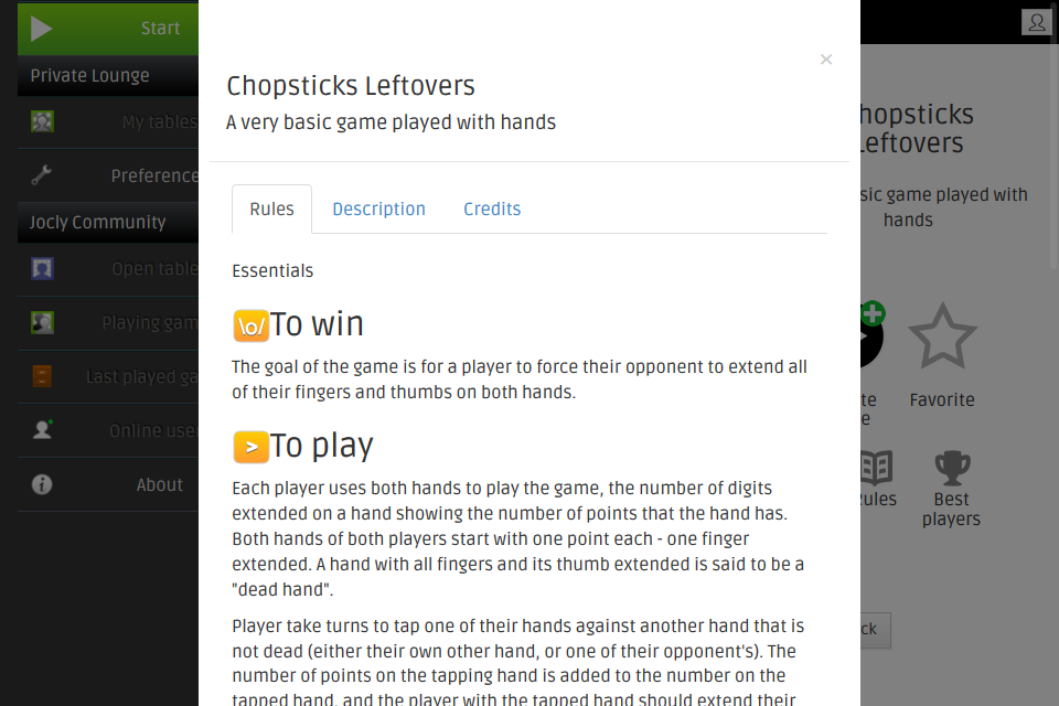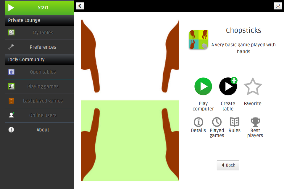 A game you play with your hands.Popular in North-America, Ireland, India and Japan This application features 3 variants of Shopsticks: regular, leftover and exact.
