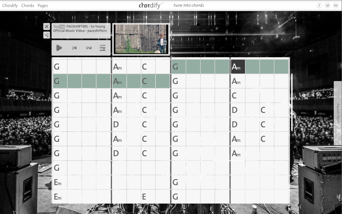 Chordify turns any music or song (youtube, soundcloud, mp3) into chords. Chordify is a music player that extracts chords from musical sources like Soundcloud, Youtube or your own files, and shows you which chord to play when. The aim of Chordify is to make state-of-the-art music technology accessible to a broader audience. Our interface is designed to be simple: everyone who can hold a musical instrument should be able to use it.