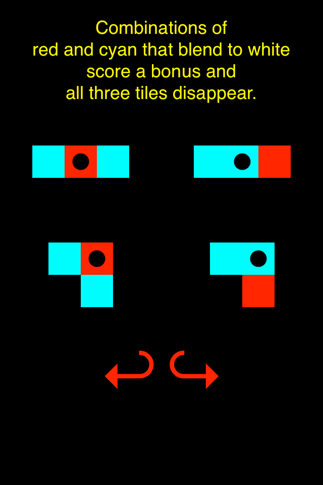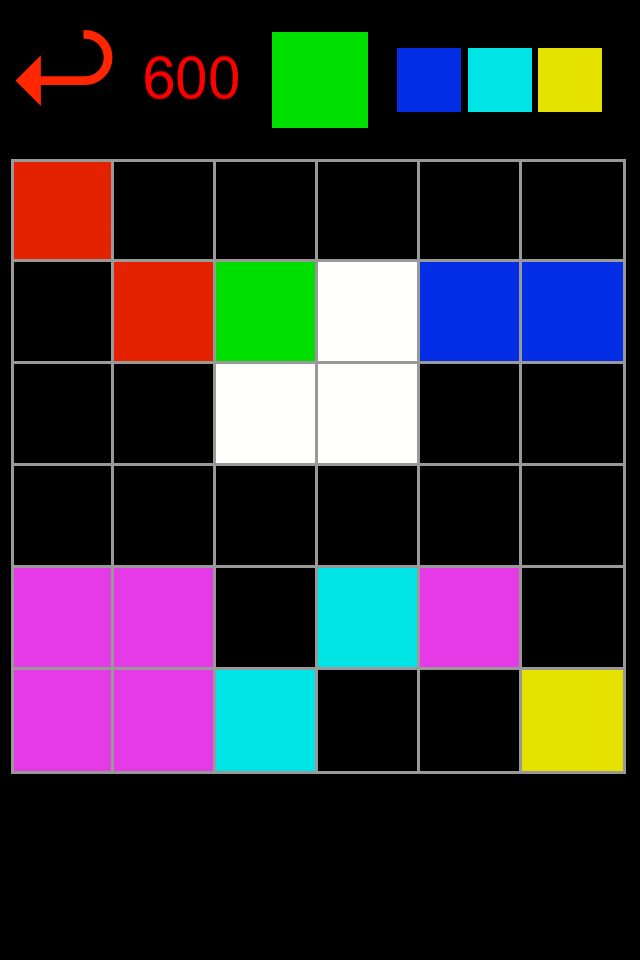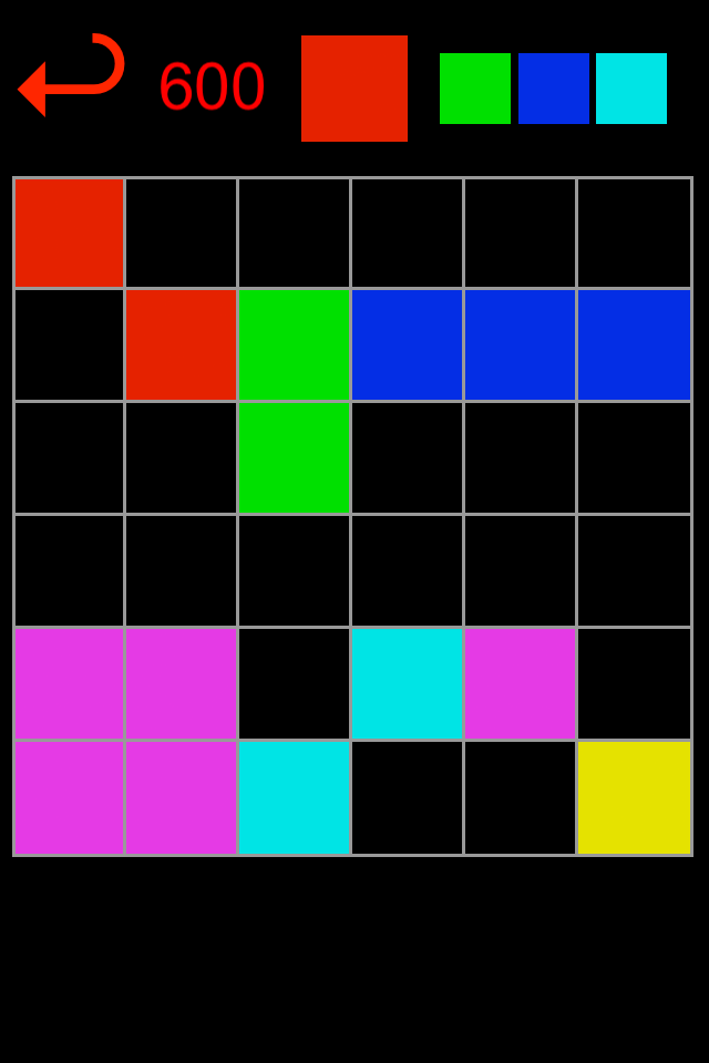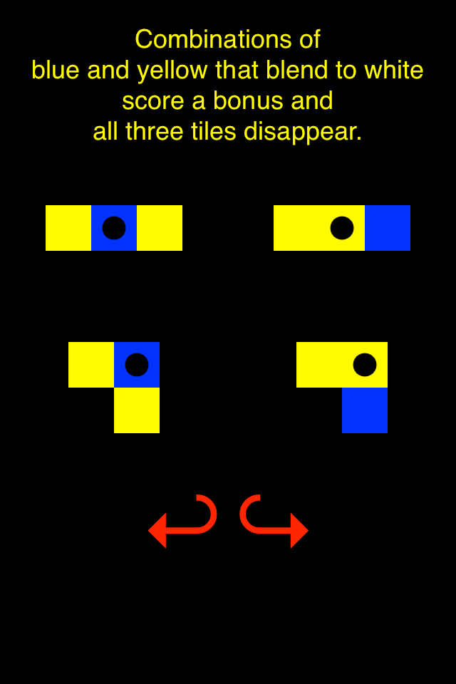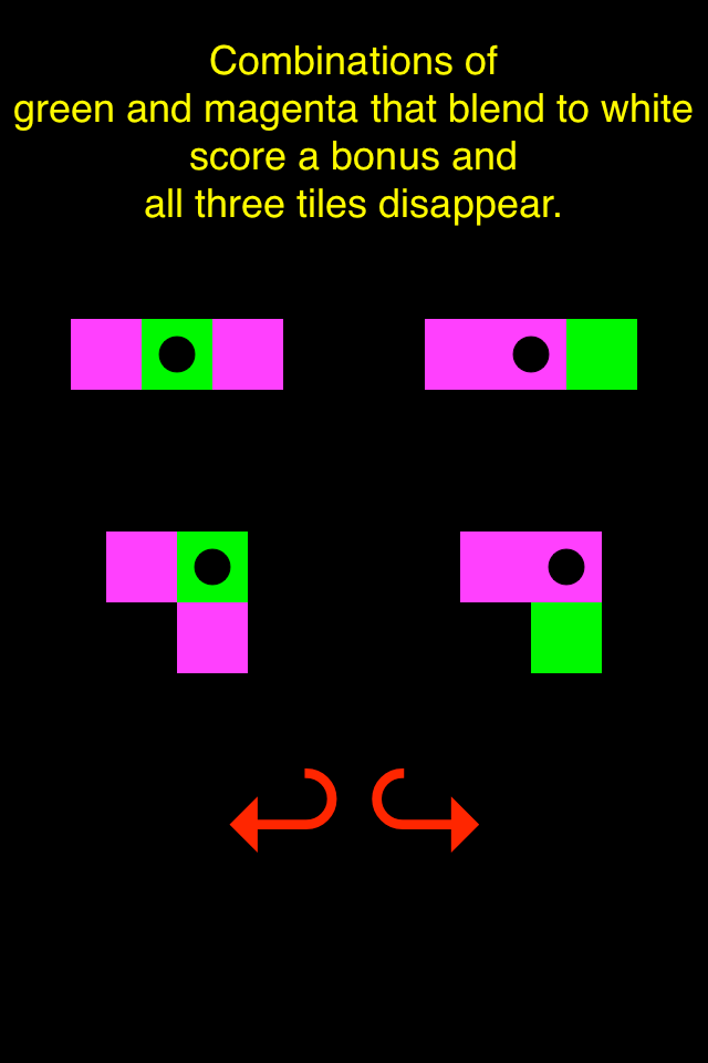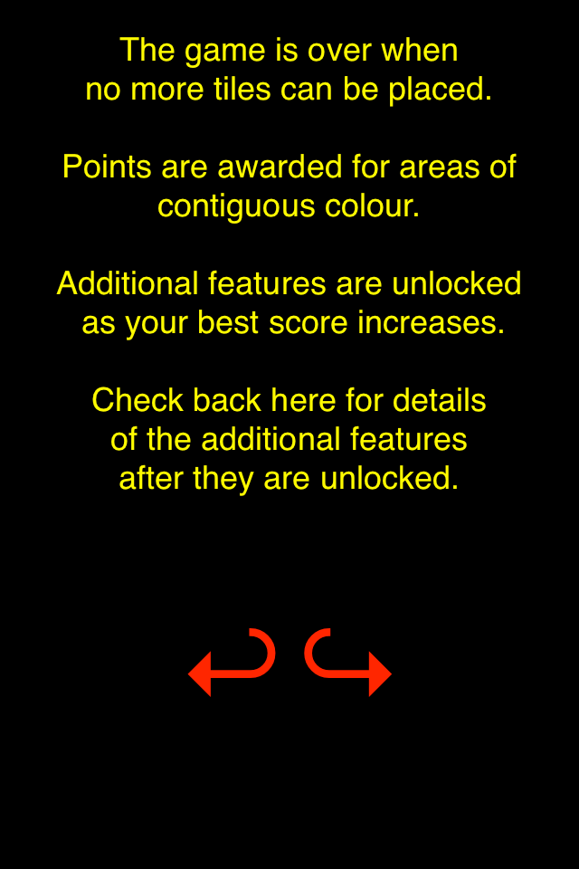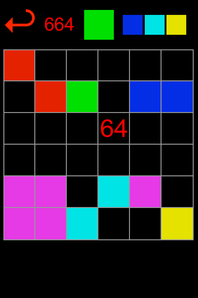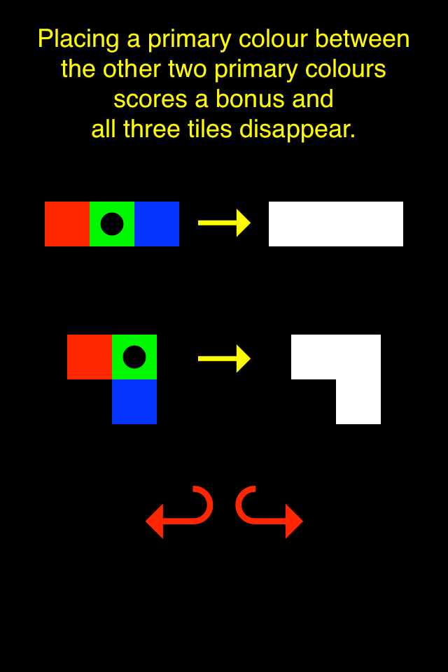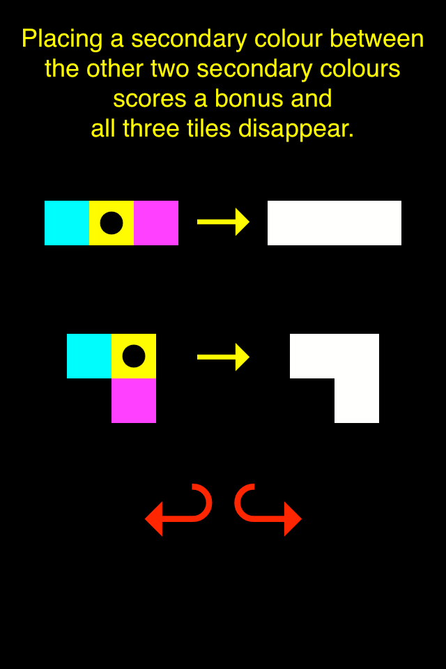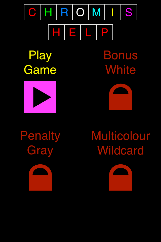 Place tiles on the board to grow areas of the same colour. You can see the colour of the next tile and the three tiles after that. Score bonus points for patterns of tiles that blend to white, such as, red + green + blue or cyan + yellow + magenta. Other combinations that blend to white include cyan + red + cyan, yellow + blue + yellow and magenta + green + magenta. When you create a bonus pattern you score points and the tiles involved disappear from the board. When the board is full you are awarded points for areas where adjacent tiles have the same colour. Chromis stores the state of the board after each move and automatically returns to a game in progress when you re-launch the application. Explore four levels with increasingly elaborate blending rules to keep you on your toes. Level 1 uses tiles that are red, green, blue, cyan, yellow and magenta. Score over 8000 points on level 1 to unlock level 2. Level 2 introduces white tiles which can be used to create additional bonus patterns. Score over 10000 points on level 2 to unlock level 3. Level 3 introduces gray tiles which incur a penalty at the end of the game but which can be destroyed by cunning placement of bonus patterns. Score over 12000 points on level 3 to unlock level 4. Level 4 introduces the multi-colour wildcard and with it an extra dimension of strategy to continue to improve your personal best score. At any point you can return to an earlier level and try to improve on your previous best score for that level.