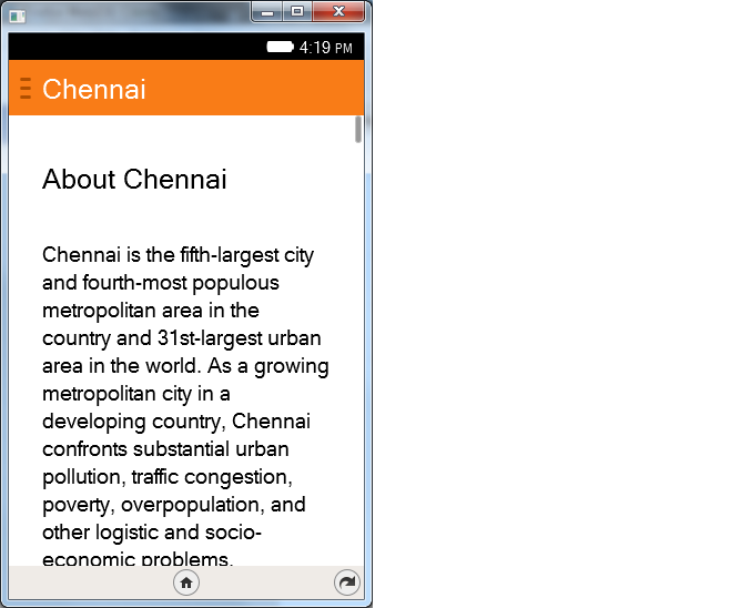 An app about namma chennai. Gives you a brief introduction about chennai city!