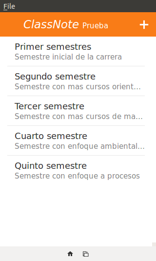 Gestione sus notas de clase de los cursos de cada semestre. Podrá crear semestres según tenga necesidad así como los diferentes cursos dentro de cada semestre, dentro de los cuales podrá ingresar sus notas de clase ya sea unicamente texto o también incluir una foto u imagen de su galería.