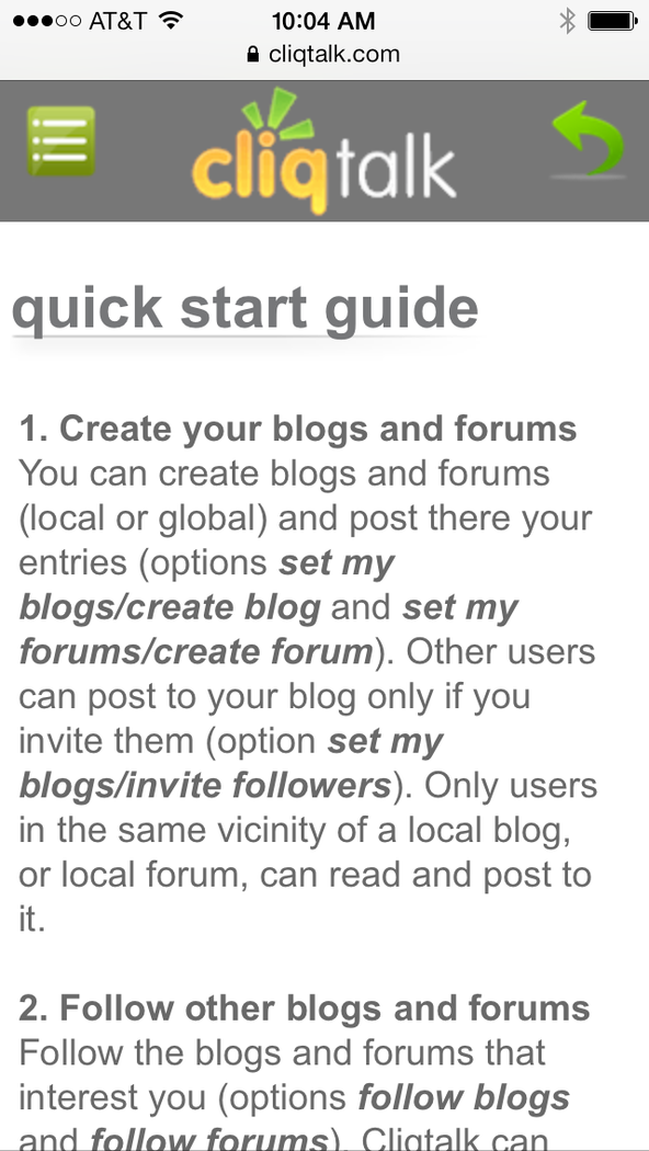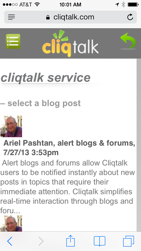 Share and talk about your photos, videos, documents, and cool sites. Cliqtalk is an instant collaboration service for mobile communities where users can share and talk about their media in topics. Each topic consists of a blog or forum where users converse about a common interest. Collaboration can occur in real-time, and access is seamless from laptops, tablets, and smartphones.