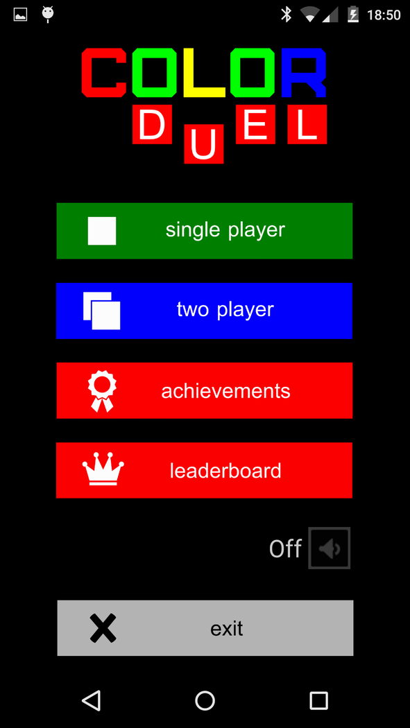 Remember the color sequence and repeat it flawlessly! Can you beat your friends? Color Duel is an addicting puzzle game with a new twist to a gaming classic. The idea is simple: Remember the blinking colors and then repeat the sequence by tapping the color fields in the same order. What starts easy, becomes challenging quickly when speed and the number of colors are increasing. You need to try this to believe how hard this can get! Playing alone you can unlock achievements and climb the highscore leaderboards. But make sure to catch one of your friends and give it a spin on a single device. Each one of you gets his own buttons to repeat the sequence. Just be sure to be faster than your opponent, but don't get a single color wrong or you will loose the round! Features: - simple to understand - hard to master - unlock new levels - increasing difficulty over time and levels - hot seat multiplayer on a single device - great on tablets - unlock Google Play achievements - climb the highscore leaderboard - game progress synced on your devices (requires Google Play sign in) - unique sounds for every color - sounds can be disabled - completely free and no Ads! Try Color Duel today, but be warned: It's addictive! ;)