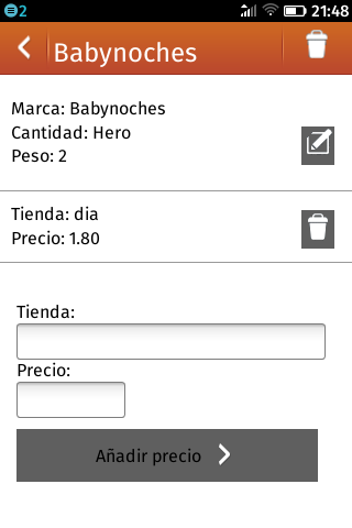 Comparador de precios, puedes crear productos y guardar precios de cada tienda. Puedes exportar e importar todos los datos.