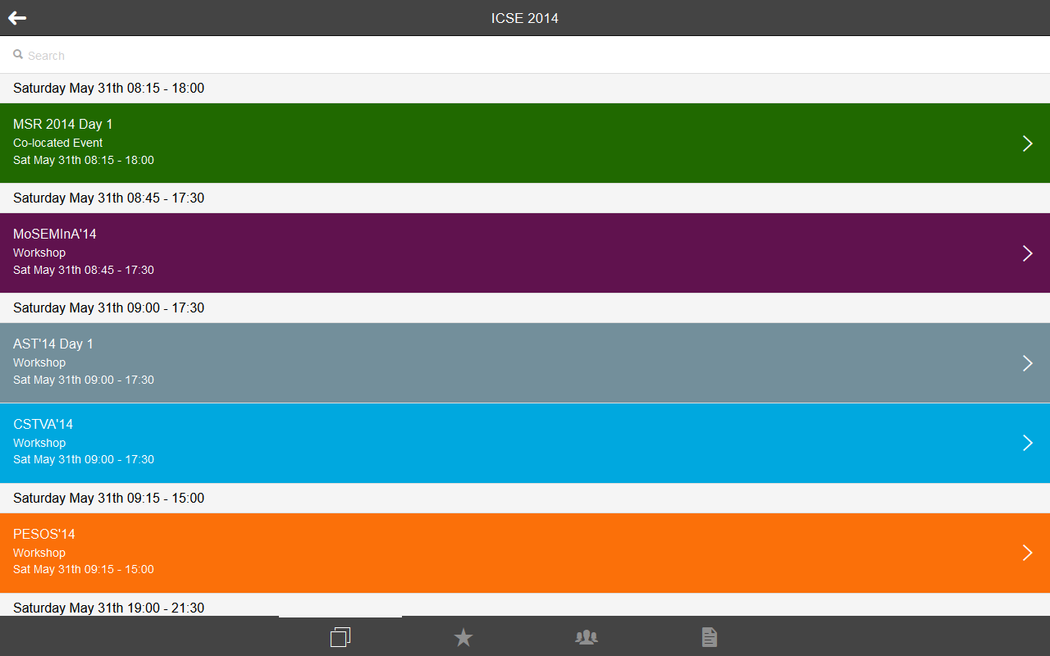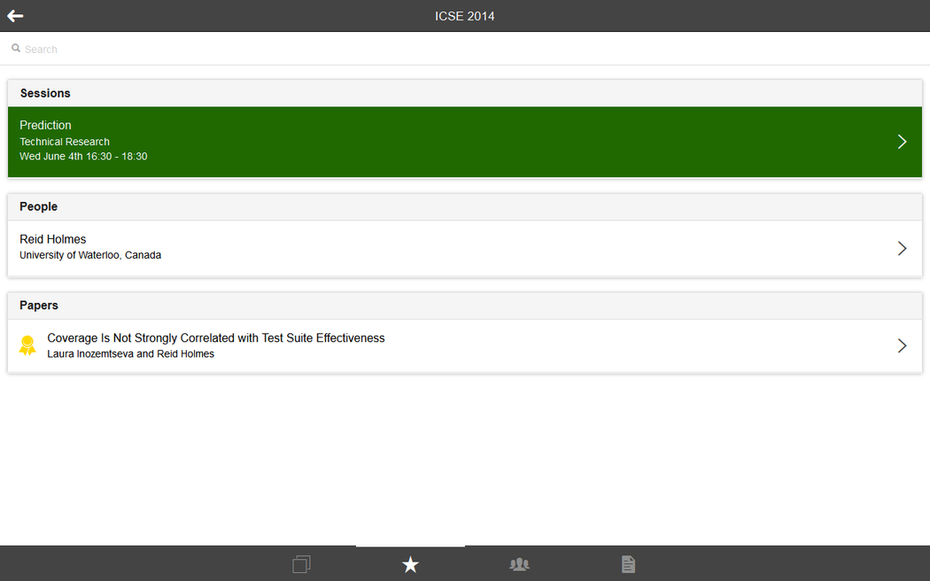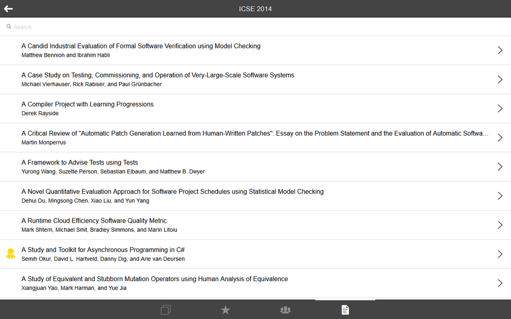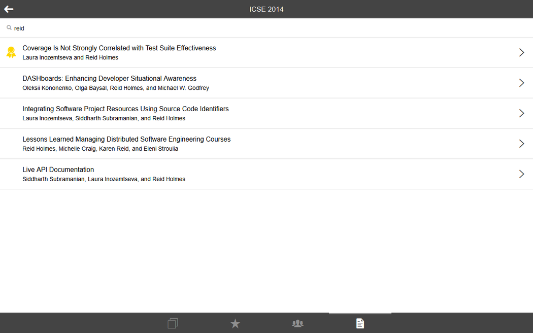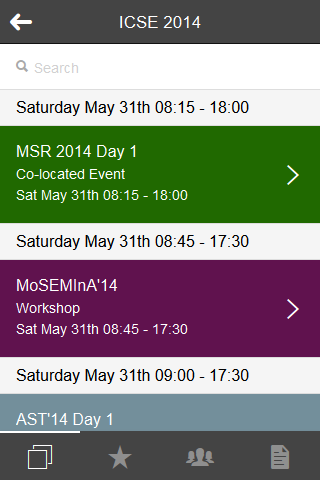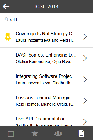 Confero provides a customizable conference program to various academic conferences. Users are able to select the papers and sessions that they find most relevant to include in their own custom program. Confero is intended to help conference attendees more easily plan their day so they can spend more time networking with peers and going to great talks and less time flipping through the conference program.