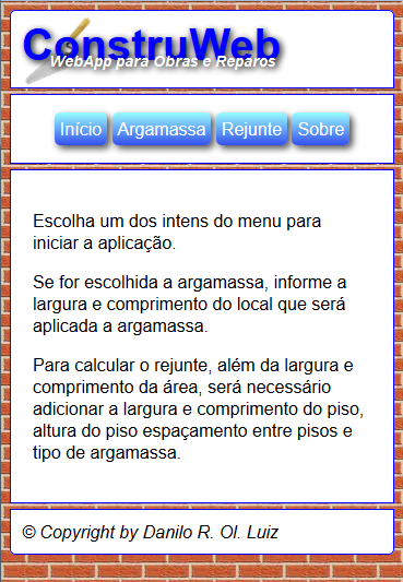 WebApp para cálculo de material de construção, Faça calculo para argamassa e rejunte. Versão gratuita.