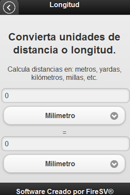 Convierte unidades de medida de una forma muy sencilla de diferentes magnitudes.Tambien puedes consultar equivalencias entre unidades de diferentes sistemas de medida, como por ejemplo el sistema de unidades anglosajón, basado en el pie, la yarda y la milla y el Sistema Métrico Internacional cuya unidad de base es el metro. INFO: https://www.facebook.com/FireSoftwareSV