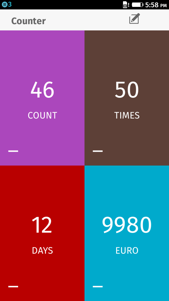 Simple Counter Application Features: - Multi counter - Minus count - Reset - Edit count value and name - Color change