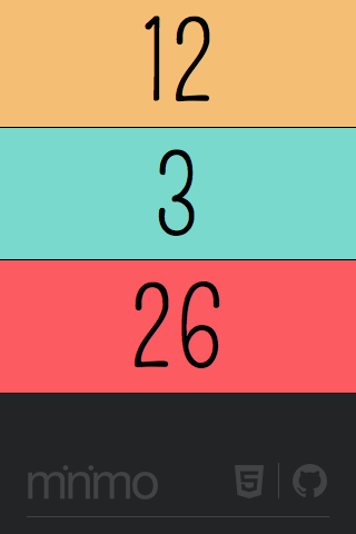 A digital tally counter. Features • easy to use • support for as many counters as you need • big numbers and pretty colors • Free! (as in beer and as in freedom) Usage Tap right to increase, tap left to decrease, swipe right to increase five, swipe left to decrease five, long-tap to access more options (reset, delete and color), scroll-up to add more counters. Why? We are humans and we count things, from the drinks we had in a party to the remaining points of blood in a card game, to the votes in a poll, to the current row on a craft work (knitting, crochet), to the number of people in an event or the cigarettes in a day. With this mobile app you will be able to do that, and more, with the help of an elegant user interface that doesn't get in your way. Changelog v0.7.7 - 29-Sept-2013 - swipe a counter for bigger increments/decrements (5) - replaced old remove counter icon (x) with a new one (trash bin) - bugfixes and performance improvements v0.6.1 - 21-Sept-2013 - Improved events engine (the bugs on mouse-based platforms should be gone) - Smaller build size (faster download!) v0.5.7 - 16-Sept-2013 Initial version.