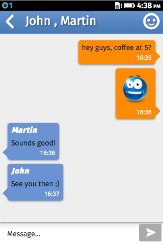 Cravox is a chat client made exclusively for Firefox OS. Cravox connects to your phone number and imports your contacts so you can chat with anybody in your contact list as long as they have Cravox installed on their phone. There is a possibility for making private and group conversations and sending smileys :)