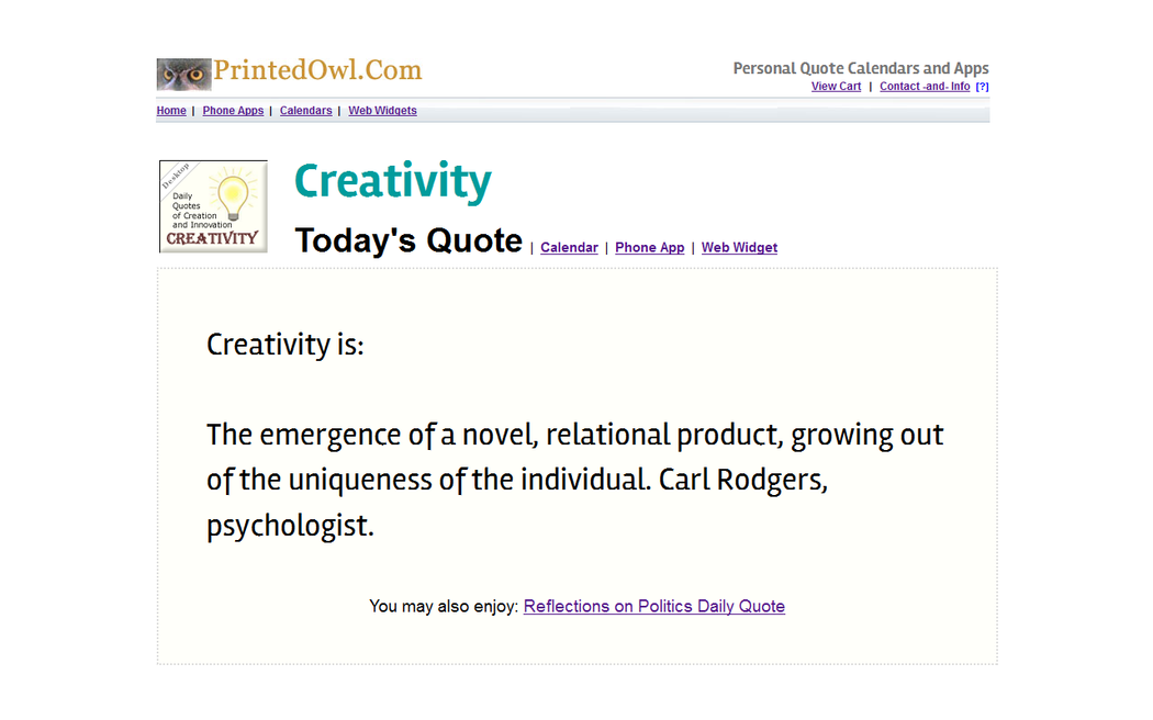 Creativity offers a daily narrative devoted to the forces of creativity, innovation and invention. Each day presents a quotation, anecdote, tip or advise focused on the wonderful art of creating. Celebrate creativity, be inspired, be entertained.