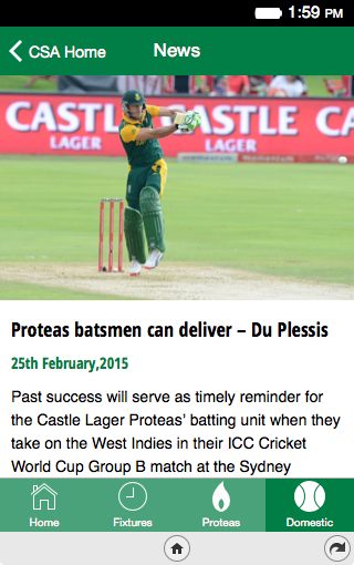 Cricket South Africa - News and stats on South African and International Cricket Please note that this app is compatible with versions of Firefox OS 2.0 and above.