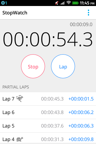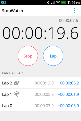 StopWatch Friendly and simple to use interface. Start the time and Stop Save time around Restart the clock The last saved data is remained List identifier laps, absolute time and time compared to the last lap If you liked the application discloses your friends. You can follow updates and news on my twitter @ webserveis More apps, support & Feedback http://firefoxosapps.webserveis.com/tag/webserveis/ More my applications http://firefoxosapps.webserveis.com/tag/weberveis/