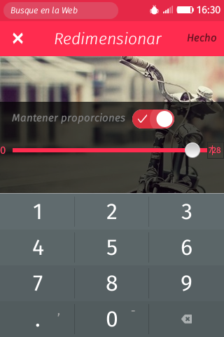 Es una App para redimensionar imágenes, aveces necesitamos enviar imagenes no tan grandes en alguna parte o simplemente el SO no soporta el tamaño de la imagen, por eso esta App te permitira cambiarlas de tamaño y posteriormente guardarlas en la SDCARD