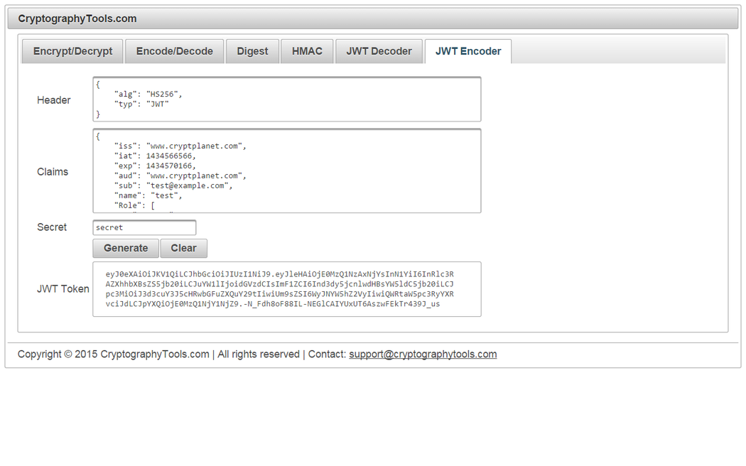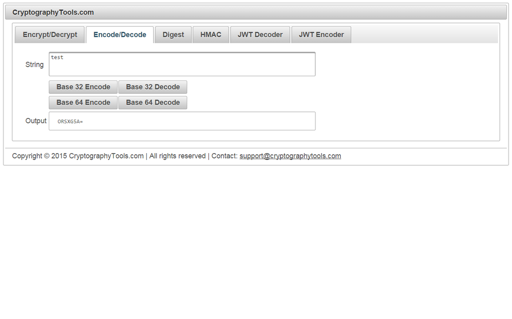 Encrypt/Decrypt | Base32/Base64 Encode/Decode | Digest/Hash/HMAC | JWT Encoder/Decoder | Password Generator