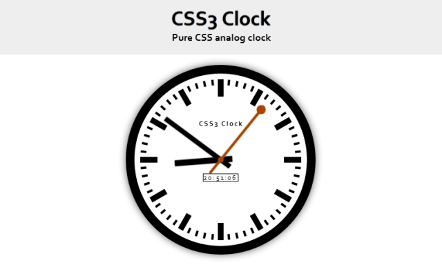 CSS3Clock is an analog clock built in pure CSS. The default timezone is UTC+8. If JavaScript is enabled, CSS3Clock will detect your device's time and change the title and favicon.