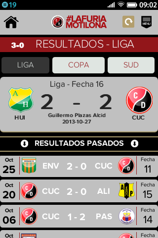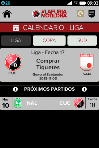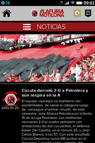 Aplicación del doblemente glorioso del fútbol colombiano ¡Creada por hinchas para hinchas! Esta versión de la aplicación del Cúcuta Deportivo, te permitirá encontrar de manera rápida, ágil y sin rodeos, toda la información que necesitas saber del equipo motilón. Comparte a través de tus redes sociales, el orgullo de ser hincha del doblemente glorioso utilizando la etiqueta #LaFuriaMotilona En esta aplicación podrás encontrar: • Noticias cortas y concretas sobre el presente del club • Resultados actualizados en tiempo real. • Estadísticas y tablas de posiciones de todos los torneos en los que el club se encuentra participando. • Calendarios con la información actualizada sobre los partidos que el club esté por enfrentar, en todos los torneos en los que se encuentre participando. • Información minuto a minuto de los partidos del club, con actualizaciones sobre todo lo que va aconteciendo en el campo, ¡EN TIEMPO REAL! • Información actualizada sobre el plantel profesional del club (posición, lugar y fecha de nacimiento, estatura, peso, etc). ¡Conoce y ten a la mano la lista de jugadores e ídolos que lo hacen grande! • Acceso directo a las redes sociales oficiales del club, donde podrás interactuar con otros hinchas como tu.