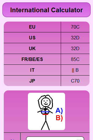 Calculate your bra's cup-size for all importend messuring-systems. Created after an online shopping afternoon with my girlfriend.