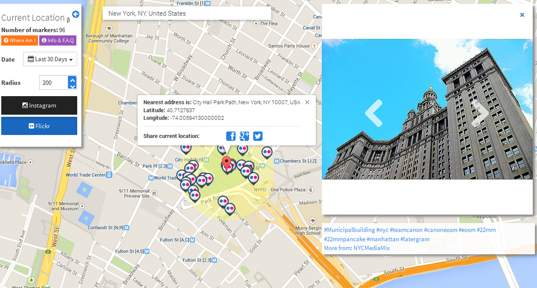 ★ Current Location is a tool that makes it possible to search on Instagram, Flickr and 500px for photos by their locations. It is awesome!",