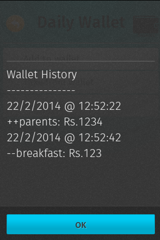 Effectieve Wallet Management for College and School students. The app keeps track of all the income and expenses a student can come across. The user can obtain the entire transactions history by clicking on the 'Daily Log' link, so that he can answer his parents effectievely. A must have app for all College and School students. Please make sure to reset the Wallet during first install.
