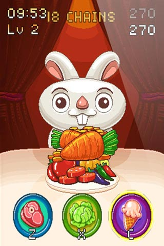 Dak dak, a food lover rabbit, is entering an eating contest! Help Dakdak win the contest by choosing an appropriate eating technique. Is it vegetable? Is it meat? Or is it delicious dessert? But be careful! Choosing a wrong technique will only waste your time. How many dishes can Dakdak clear before the time runs out?