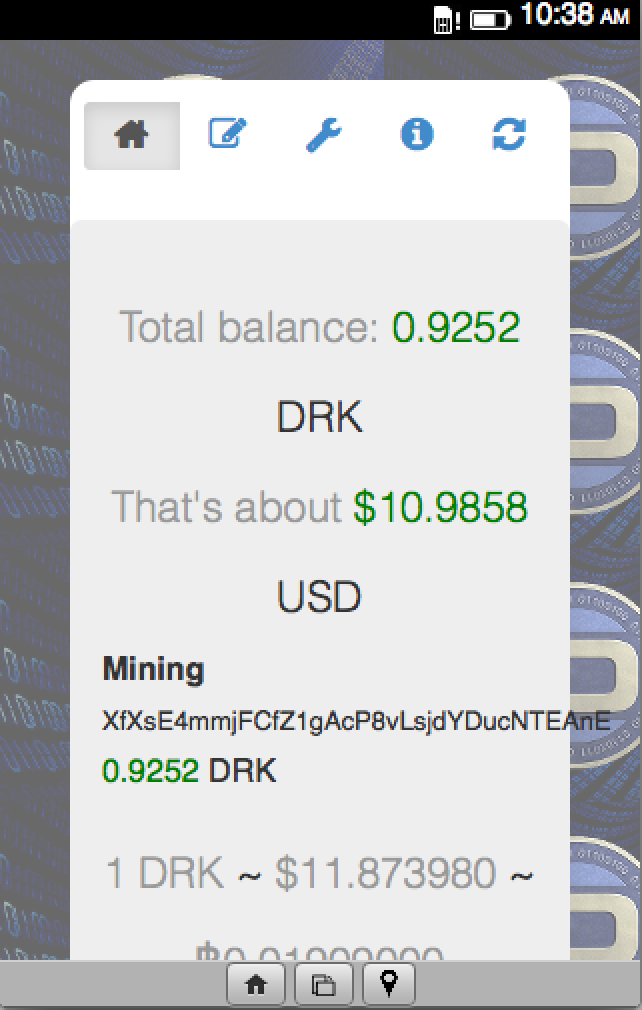See how many Darkcoin you own and what they’re worth. Enter your wallet addresses to see how much you have. Darkcoin Balance also tells you approximately how much all your DRK are worth in USD, CNY, EUR, or BTC. The DRK exchange rate is displayed at the bottom of the screen. Backend uses data from explorer.darkcoin.io and cryptocoincharts.info. If your balance looks lower than that reported by your wallet client: http://d2a4gw4qtrw231.cloudfront.net/support.html#FAQ_why_does_my_balance