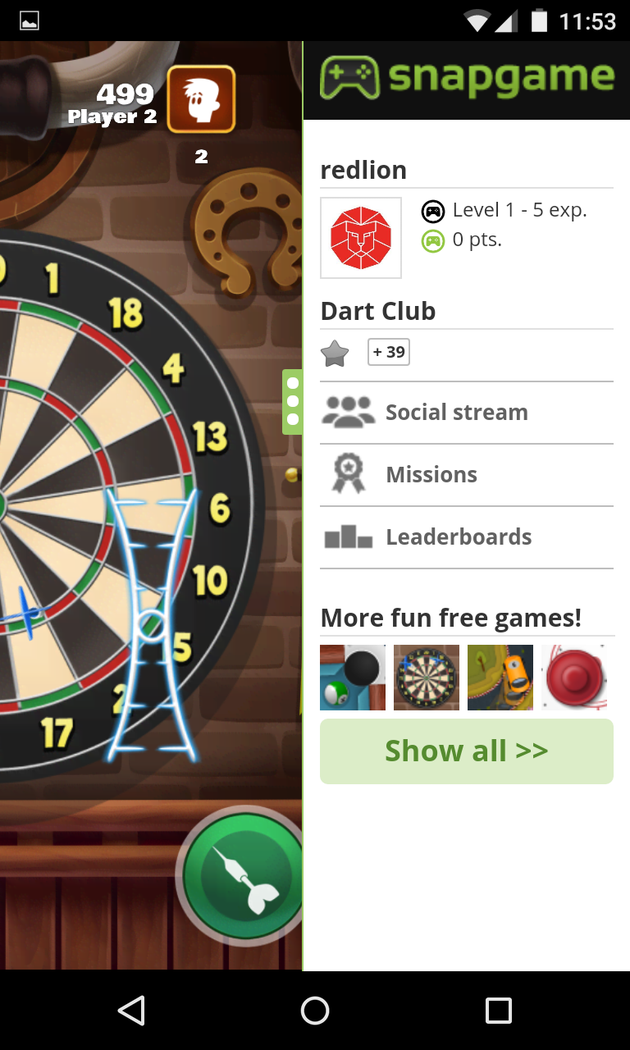 With Dart Club you can play a classic 501 darts match. Practice your skills single player or play against your friends. Dart Club guarantees hours of fun for everybody!