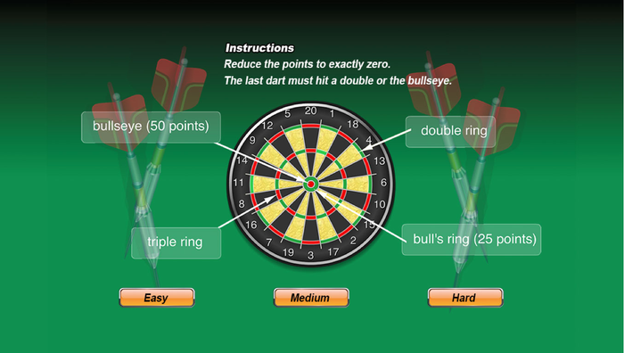 Use your skills to hit the highest points and get to 0 first, and win against your opponent. Choose from easy, normal or hard options.