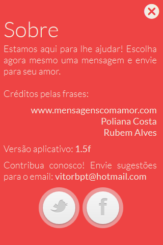 Declare o seu amor agora mesmo com lindas mensagens. Esse aplicativo foi criado para ajudar você que gosta de surpreender sua(seu) amada(o) com lindas mensagens! Com o "Declarações" você pode enviar diretamente por SMS. O aplicativo ainda esta em fase inicial, então agradeço a ajuda de todos com sugestões e mais declarações.