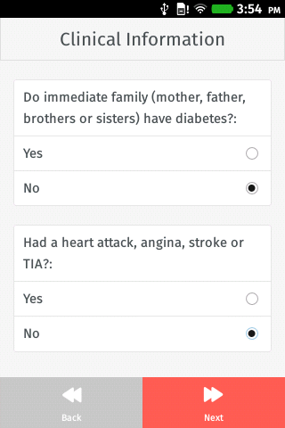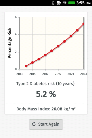 Easily estimate the risk of developing Type 2 Diabetes over the next 10 years by answering some simple questions within the app. The calculation is based on the open source ClinRisk QDiabetes algorithm. The algorithm has been developed by doctors and academics working in the UK National Health Service (NHS) and is based on data from thousands of GPs. Note: The app is currently in Public Beta on the Firefox OS platform.